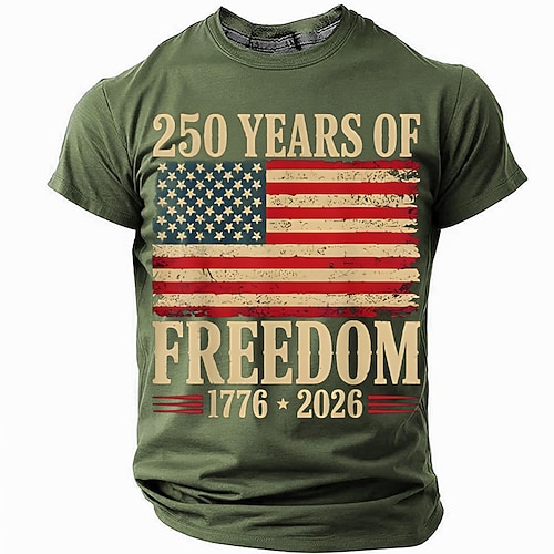 Herren 250. Jahrestag der Vereinigten Staaten T Shirt Kurzarm T-Shirt 3D-Druck Rundhalsausschnitt Hemd Täglich Militär Straße Täglich Blau Schwarz Rote Sommer Frühling Bekleidung S M L XL XXL XXXL