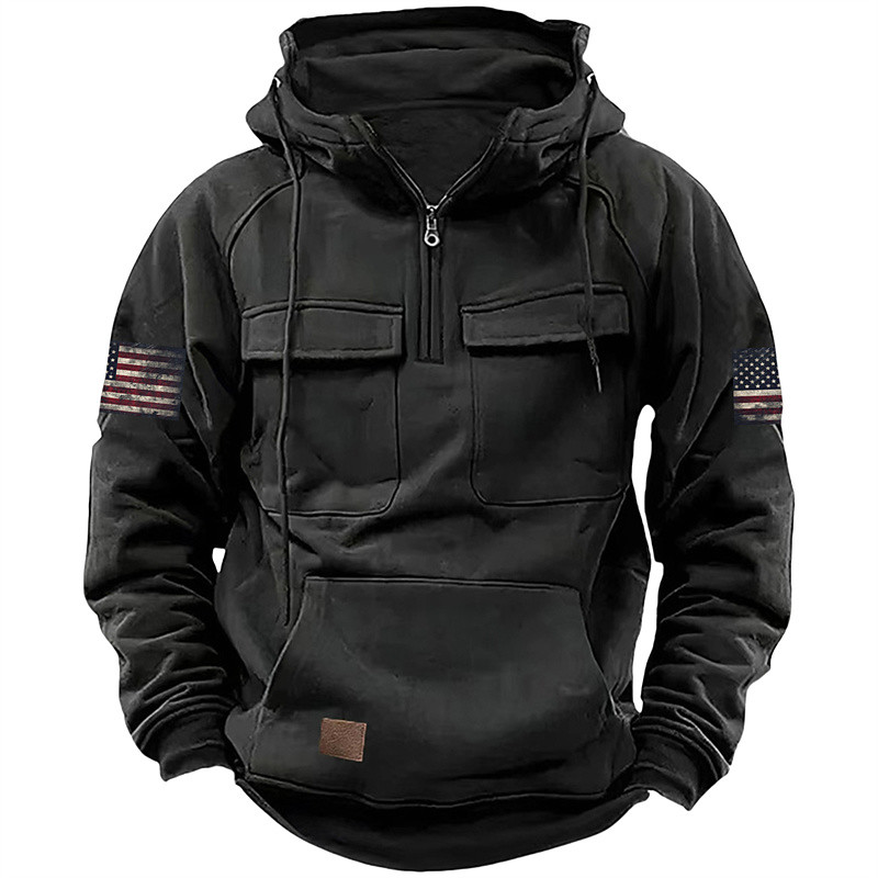 Men's Hoodie Quarter Zip Hoodie Black Pink Wine Blue Green Hooded National Flag Drawstring Pocket Sports Outdoor Daily Holiday Streetwear Basic Casual Spring Fall Clothing Apparel Hoodies