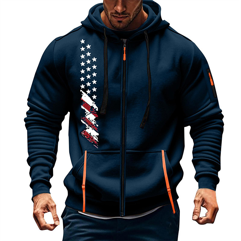 Men's Hoodie Black Army Green Navy Blue Blue Brown Hooded National Flag Pocket Sports Outdoor Daily Holiday Polyester Streetwear Basic Casual Spring Autumn / Fall Clothing Apparel Hoodies