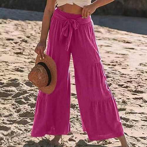 Per donna Finto cotone e lino Pantaloni Eleganti Casual Lunghezza intera Naturale Semplice Elastico in vita All'aperto Confortevole Streetwear Abbigliamento quotidiano Rosso scuro Vinaccia Blu cielo