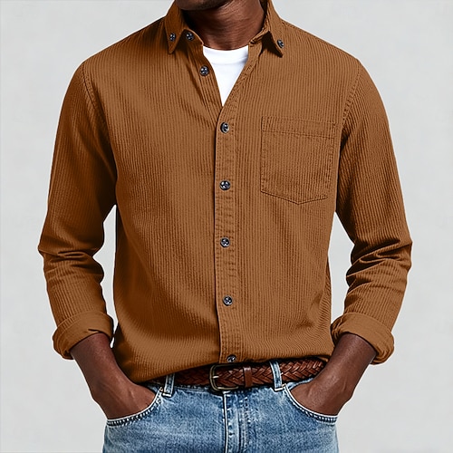 Per uomo Camicia Camicia button-down Camicia di Velluto a Coste Sopracamicia Blu Giallo Rosso Blu marino Verde Manica Lunga Semplice Bavero Casuale All'aperto Tasca Frontale Abbigliamento Moda