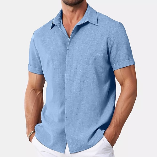 Per uomo Camicia Camicia di lino Camicia Estiva Camicia button-down Camicia casual Camicia da Spiaggia Semplice Vacanza Casuale Nero Bianco Rosa Blu Manica Corta Colletto Estate Abbigliamento