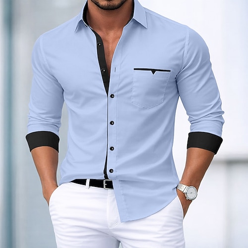 Per uomo Camicia Camicia elegante Camicia button-down Camicia non stiro Camicia con Bottoni Blocco di colori Casuale Quotidiano Blu Bianco Rosa Kaki Manica Lunga Collo ripiegato Primavera Primavera