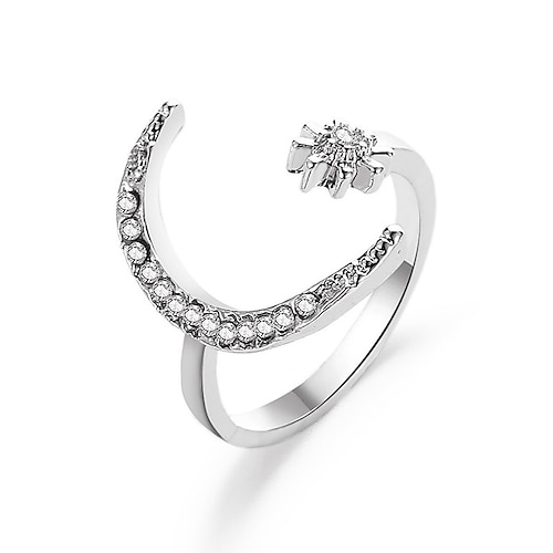 anello regolabile da donna in lega con motivo a mezzaluna e stella, disponibile in più colori, perfetto per un abbigliamento casual e da sera