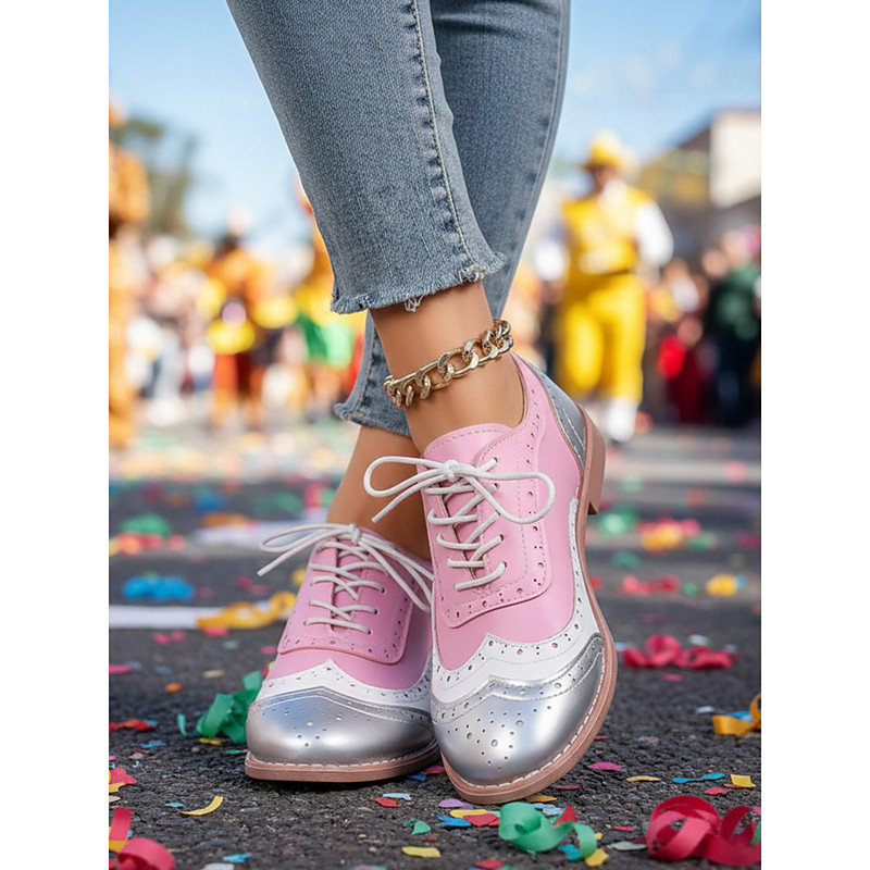 Women's Mardi Gras Colorful Vibrant Pink Purple Wingtip Brogues with Lace-Up Oxford Shoes – Retro Festival Style for Carnival Parades, Costume Parties Celebrations