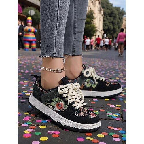 Damen Mardi Gras Freizeit Bunte Sneakers mit gemustertem Design Bequeme Passform Trendige Freizeit Schuhe für Karneval oder Festival Spaß