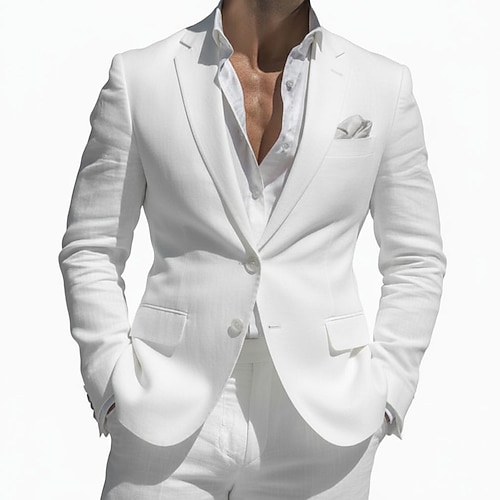 Herren Lässig Strandhochzeit Leinenanzüge Gekerbtes Revers Weiß Rosa Mode Täglich Einfarbig Figurbetonter Schnitt 2-teilig Einreiher - 1 Knopf
