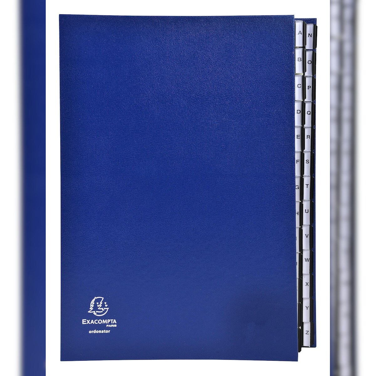 Exacompta 621229E Ordnungsmappe mit festem Deckel und dehnbarem Faltenrücken, 26 Fächer mit Kunststofftaben A-Z, Ordonator,DIN A4 - Blau