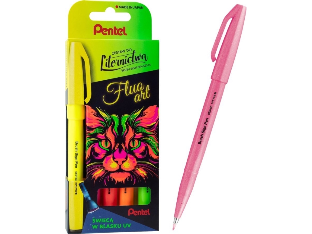 Sivellinkynä Fluo Art UV 5-värinen kirjainsarja Pentel