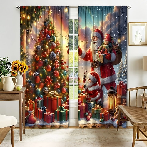 Tende natalizie, stampa digitale 3D, tende per finestre, pannelli decorativi festivi per soggiorno, camera da letto, decorazioni per la casa, set di tende in tessuto morbido
