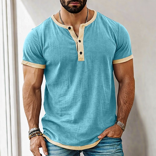 Da uomo Maglietta Maglia Henley Camicia a Maniche Corte Manica Corta Henley Estate Primavera Primavera Estate Blocco di colori Moda Designer Essenziale Patchwork Vacanza Streetwear Uscire Nero Blu