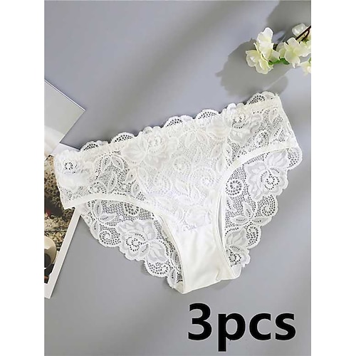 Per donna Mutandine Pizzo Elastico in vitaNightwearCotone Nylon Tinta unita Moda Carino Blu Nero Bianco Rosa Rosso Primavera Estate Autunno Inverno Inverno