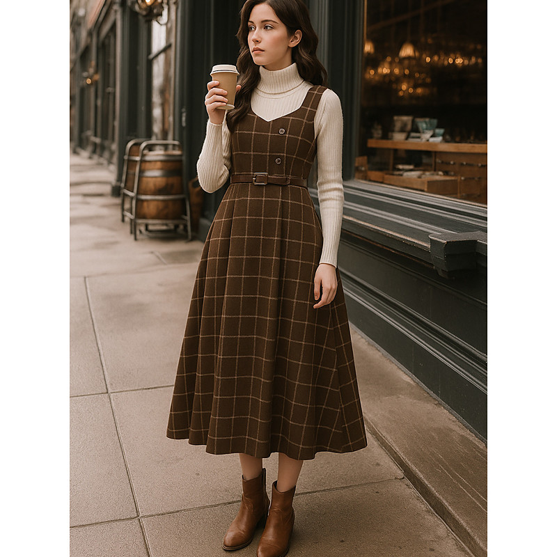 Women's Midi Dress Sheath Dress A Line Dress Vacation Casual Boho Daily Holiday Plaid Long Sleeve Turtleneck Deep Green Navy Brown