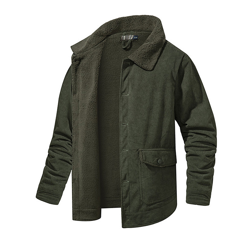 Men's Winter Coat Corduroy Jacket Fleece Jacket Casual Jacket Casual Daily Thermal Warm Pocket Button-Down Fall Winter Plaid Streetwear Daily Turndown Regular Brown Green Jacket