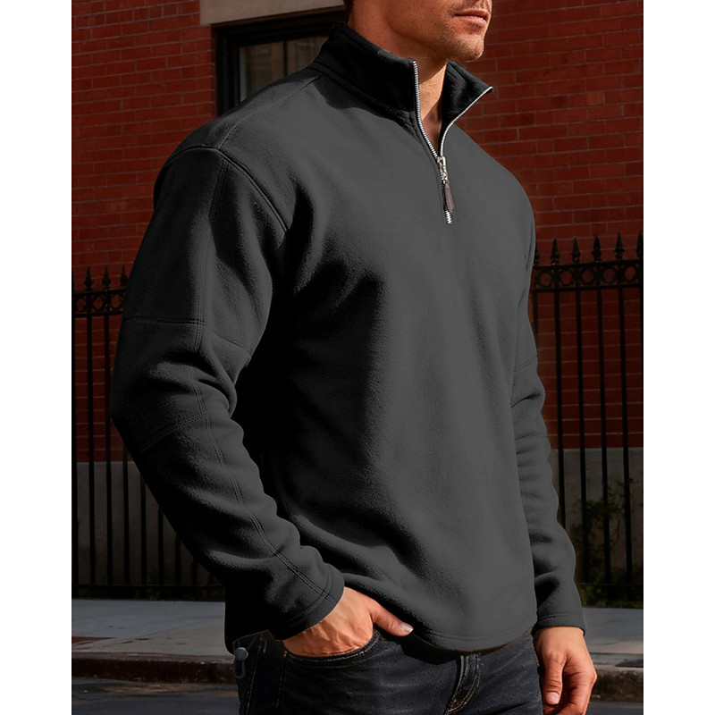 Men's Polo Shirts Quarter Zip Polo Vacation Street Quarter Zip Long Sleeve Fashion Basic Solid Color Zipper Fleece Fall Winter Regular Fit Navy Black khaki Dark Gray Coffee Polo Shirts
