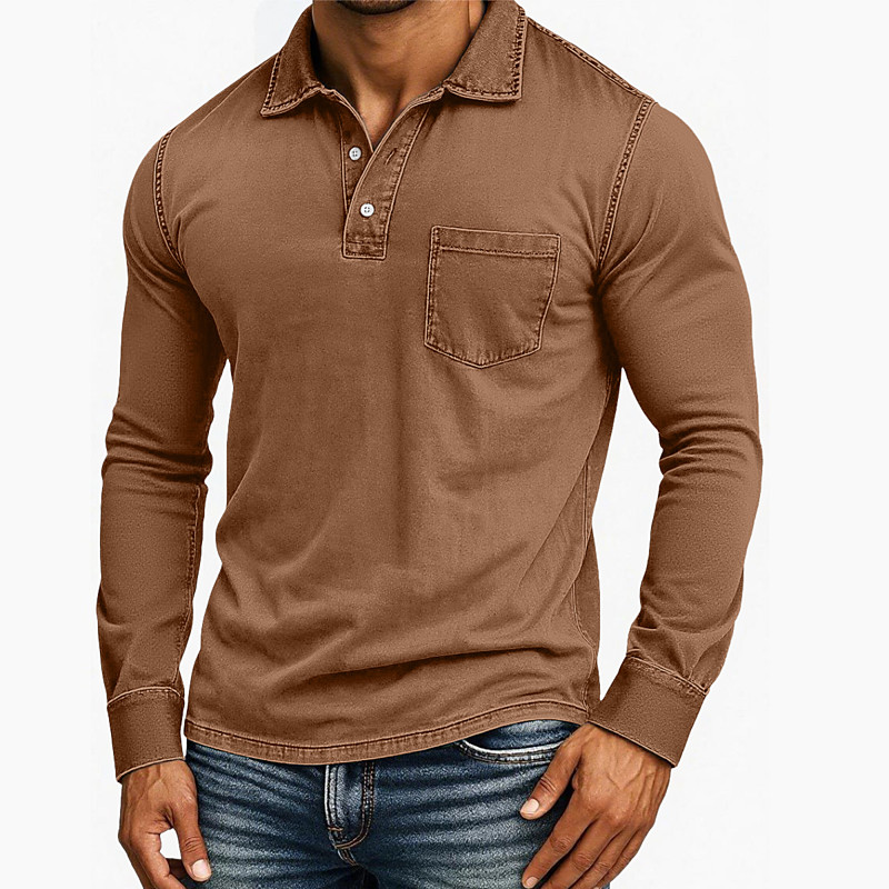 Men's Polo Shirts Quarter Zip Polo Daily Wear Date Quarter Zip Long Sleeve Fashion Basic Plain Zipper Pocket Spring Fall Regular Fit Black Pink Blue Dark Green Purple Brown Polo Shirts