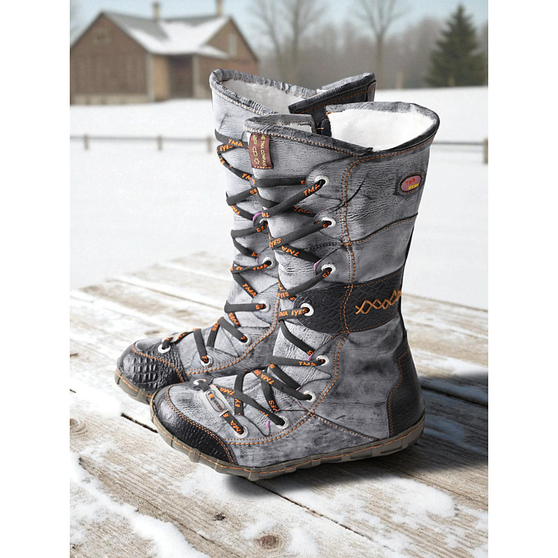 Women's Boots Work Boots Handmade Shoes Vintage Shoes Christmas Outdoor Daily Color Block Letter Fleece Lined Mid Calf Boots Flat Heel Round Toe Casual Comfort Leather Zipper Black White Red