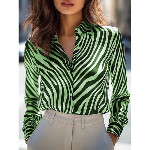 Per donna Camicia da lavoro Grafico Geometrico Elegante Moderno Casual Manica Lunga Colletto a Camicia Top Regolari Lavoro Abbigliamento da sera Quotidiano Argento Blu Viola Oro Verde Autunno Inverno