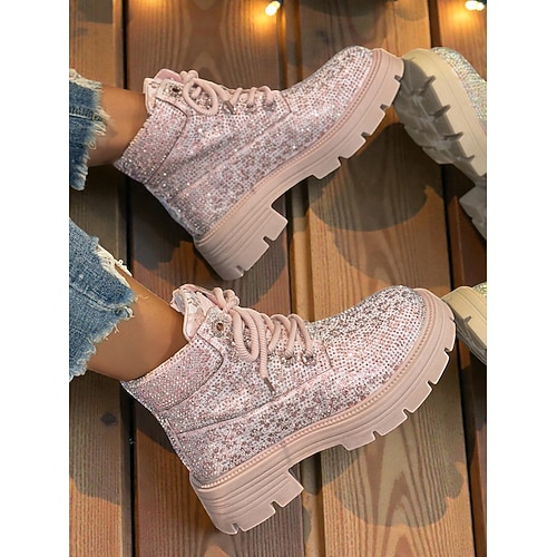 stivaletti allacciati con glitter da donna - stivali da combattimento con plateau e strass scintillanti, stile trendy per la vita notturna, per feste e club abiti da sera