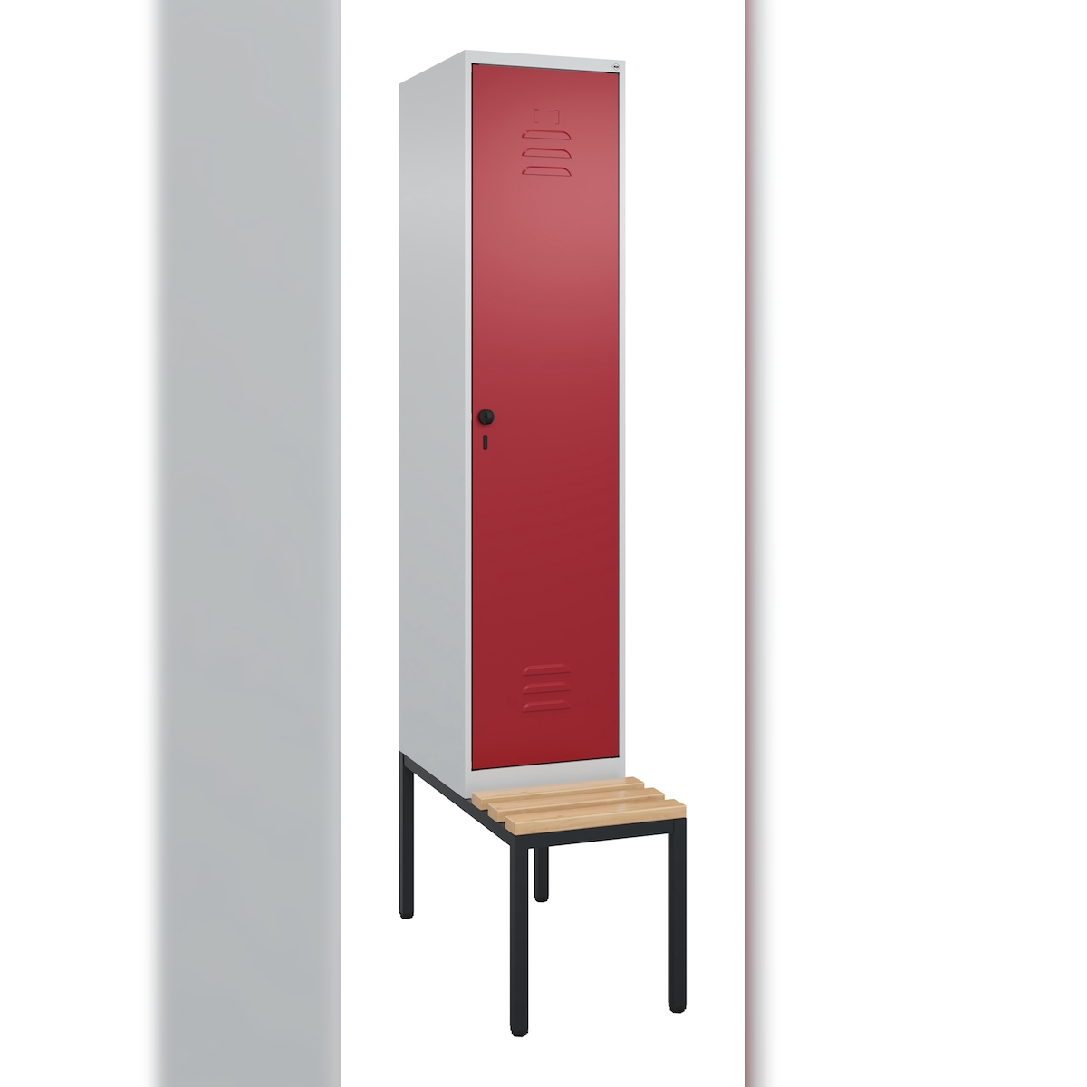 C+P Spind Classic PLUS, Buche untergebaute Sitzbank 1 Abteil, HxBxT 212x40x82cm, Sicherheitsdrehriegel, Hellgrau/Rubinrot von PROREGAL