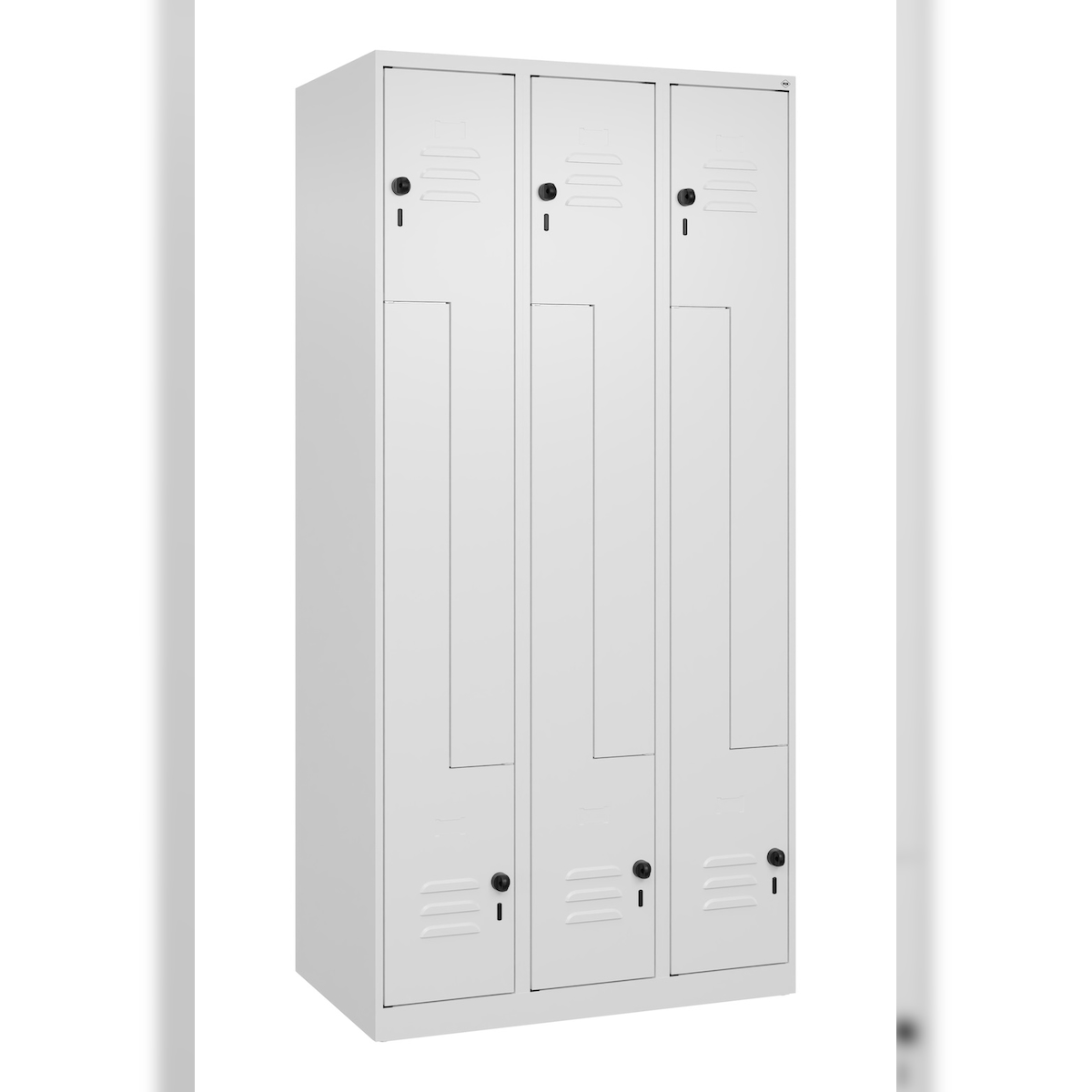 C+P Doppelstock-Spind Classic PLUS, Füße, 3 Abteile, 1950x1200x500mm, 7035/3003