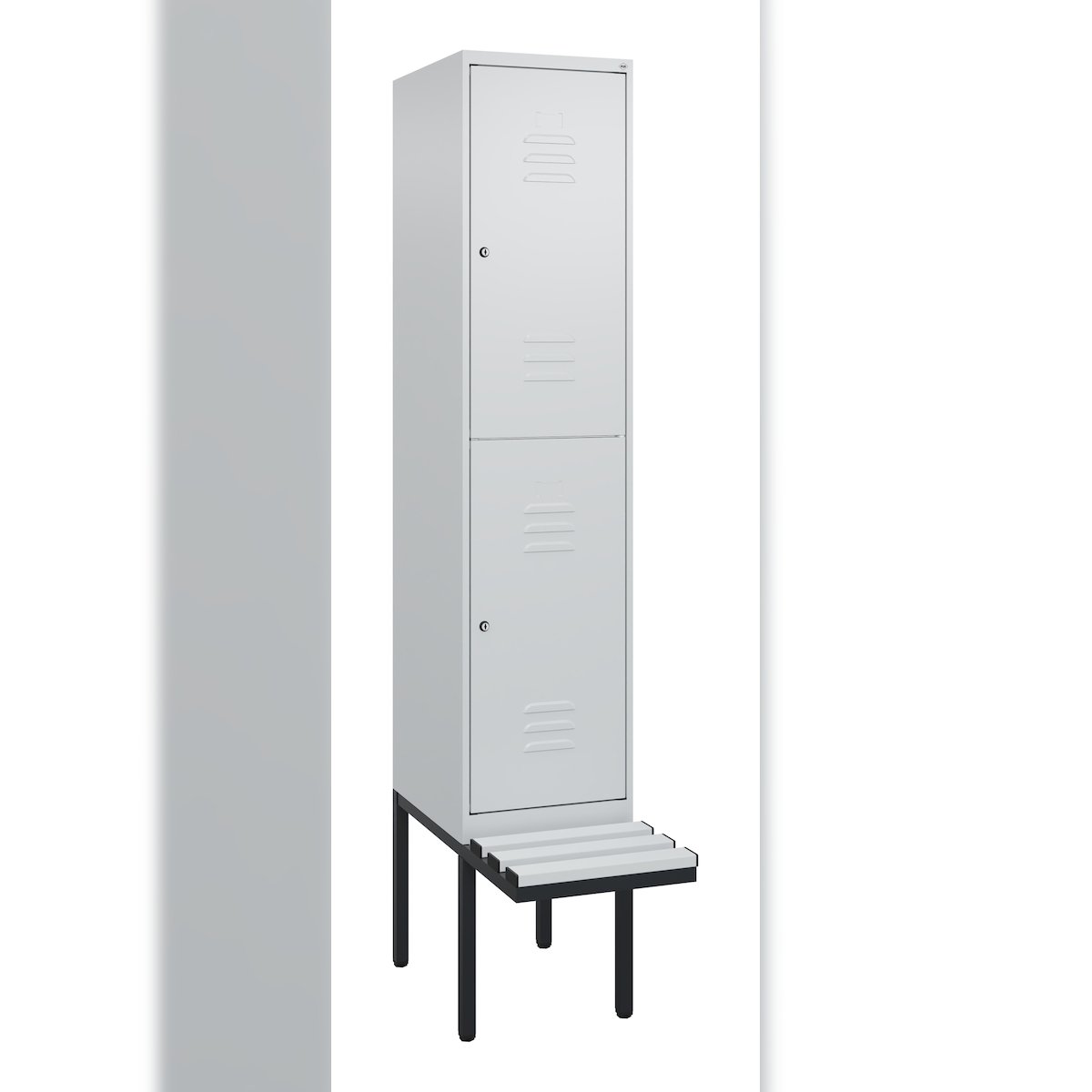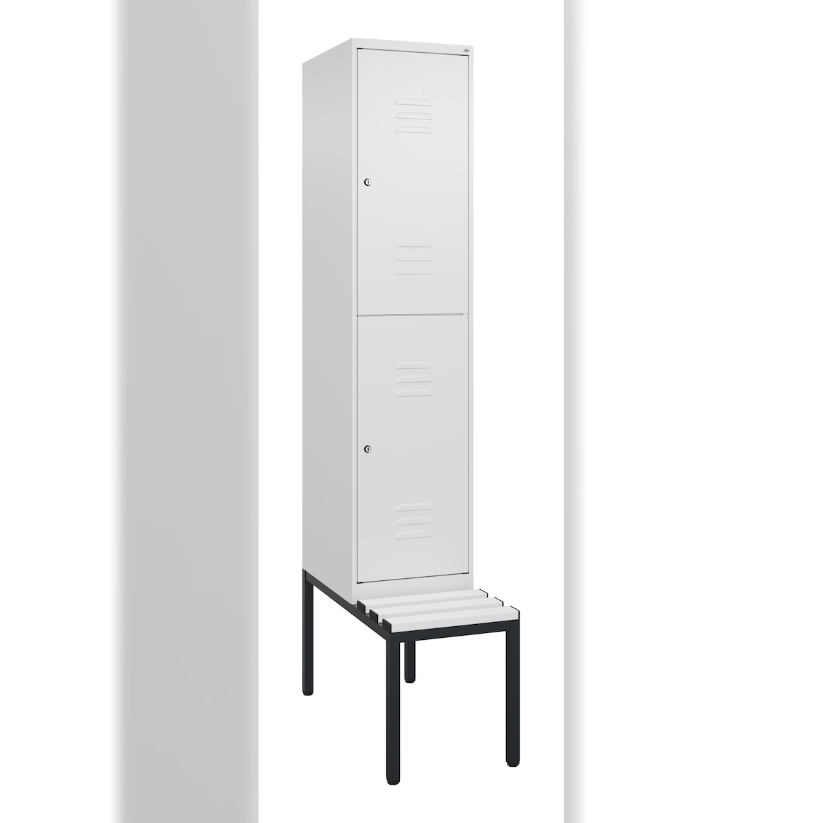 C+P Spind Classic PLUS, Kunststoff schwebende Sitzbank, 2 Abteile, HxBxT 212x40x82cm, Zylinderschloss, Hellgrau/Hellgrau von PROREGAL