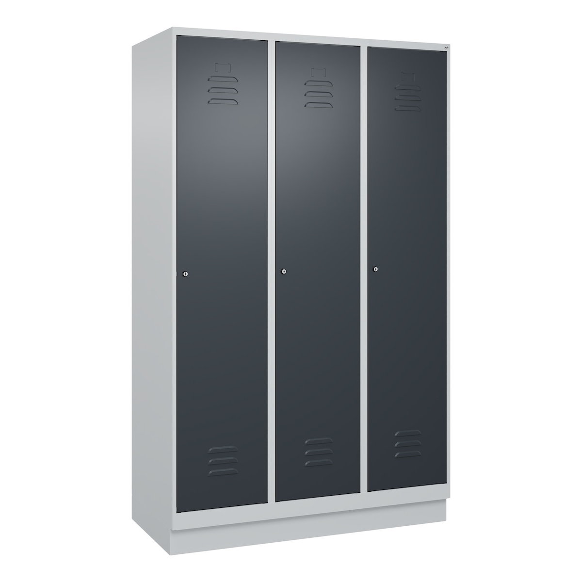 C+P Spind Classic PLUS, Sockel, 3 Abteile, HxBxT 195x120x50cm, Zylinderschloss, Hellgrau/Anthrazit von PROREGAL