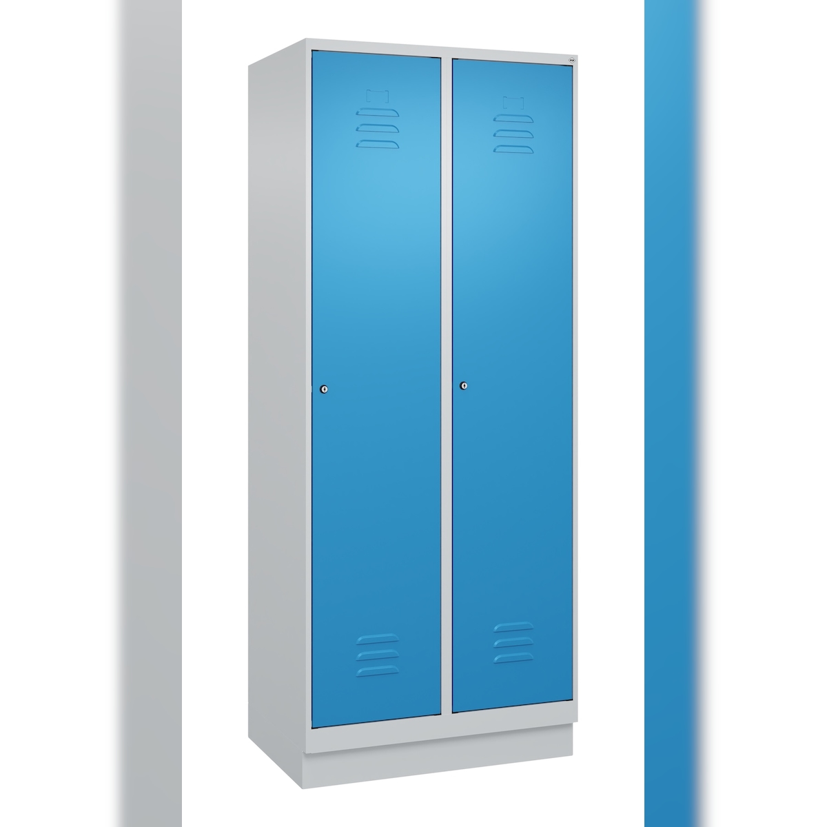 C+P Spind Classic PLUS, Sockel, 2 Abteile, HxBxT 195x80x50cm, Zylinderschloss, Hellgrau/Lichtblau von PROREGAL