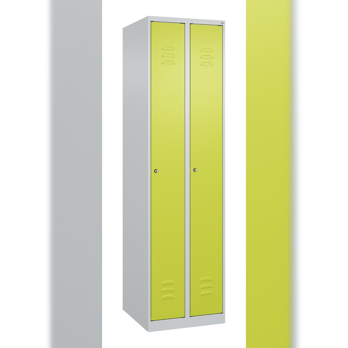C+P Spind Classic PLUS, 2 Abteile, HxBxT 185x50x50cm, Zylinderschloss, Hellgrau/Clowngrün von PROREGAL