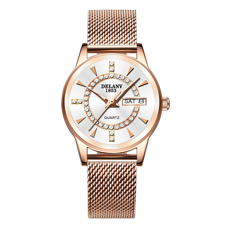 The New Ladies' Alloy Mesh Strap Fashion Watch With Ipx7 Water Resistance Dual Calendar Luminous Casual Quartz Watch Light Luxury And Versatile Elegant Ladies' Wristwatch