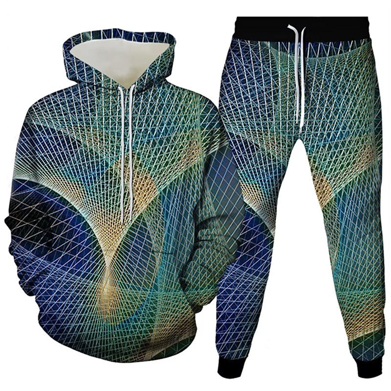 Men's 3D Geometic 2pcs 3D Sweatshirt Sets Tracksuit Hoodie Sweatshirt Long Sleeve Long pants Hooded Casual Daily Athleisure 3D Print Spring Fall Winter Robin's Egg Blue Pink Rainbow