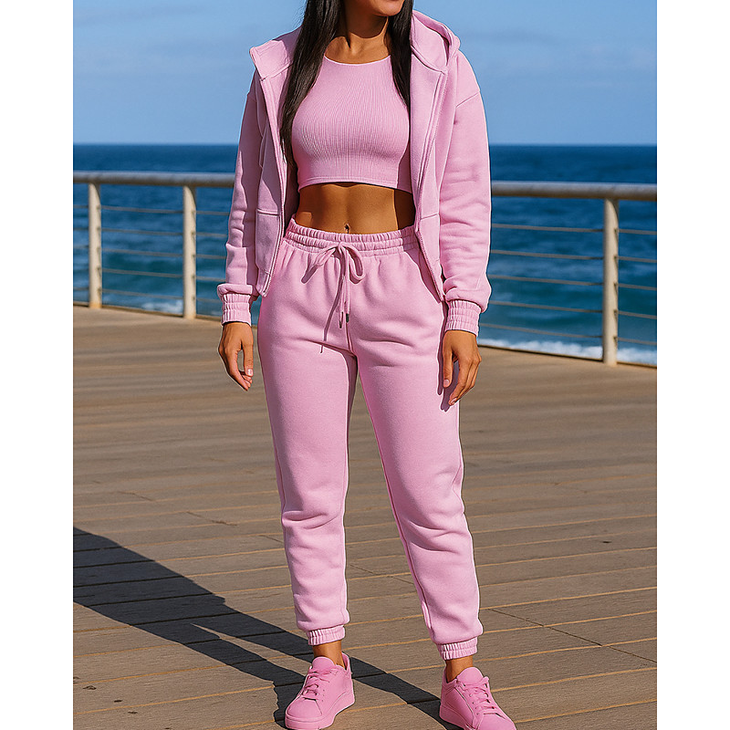 Women's 2 Piece Tracksuit Lounge Hoodie Sweatsuit Sets Elastic Waistband Solid Colored Clothing Suit Fall Black Pink Outdoor Travel Sports Moisture Wicking Long Sleeve Sport Activewear Micro-elastic