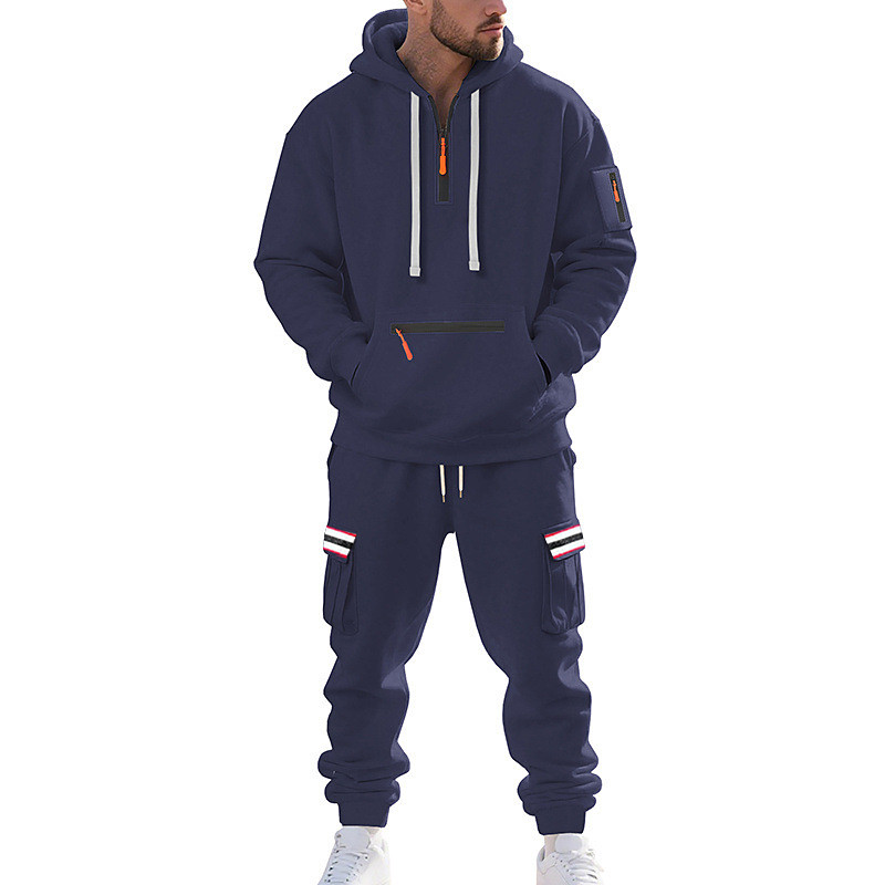Men's Sweatshirt Tracksuit Outfit Set Lapel Outdoor Daily Sports Drawstring Button Up Pocket Plain Black Red Navy Blue Polyester Activewear Fashion Streetwear Spring