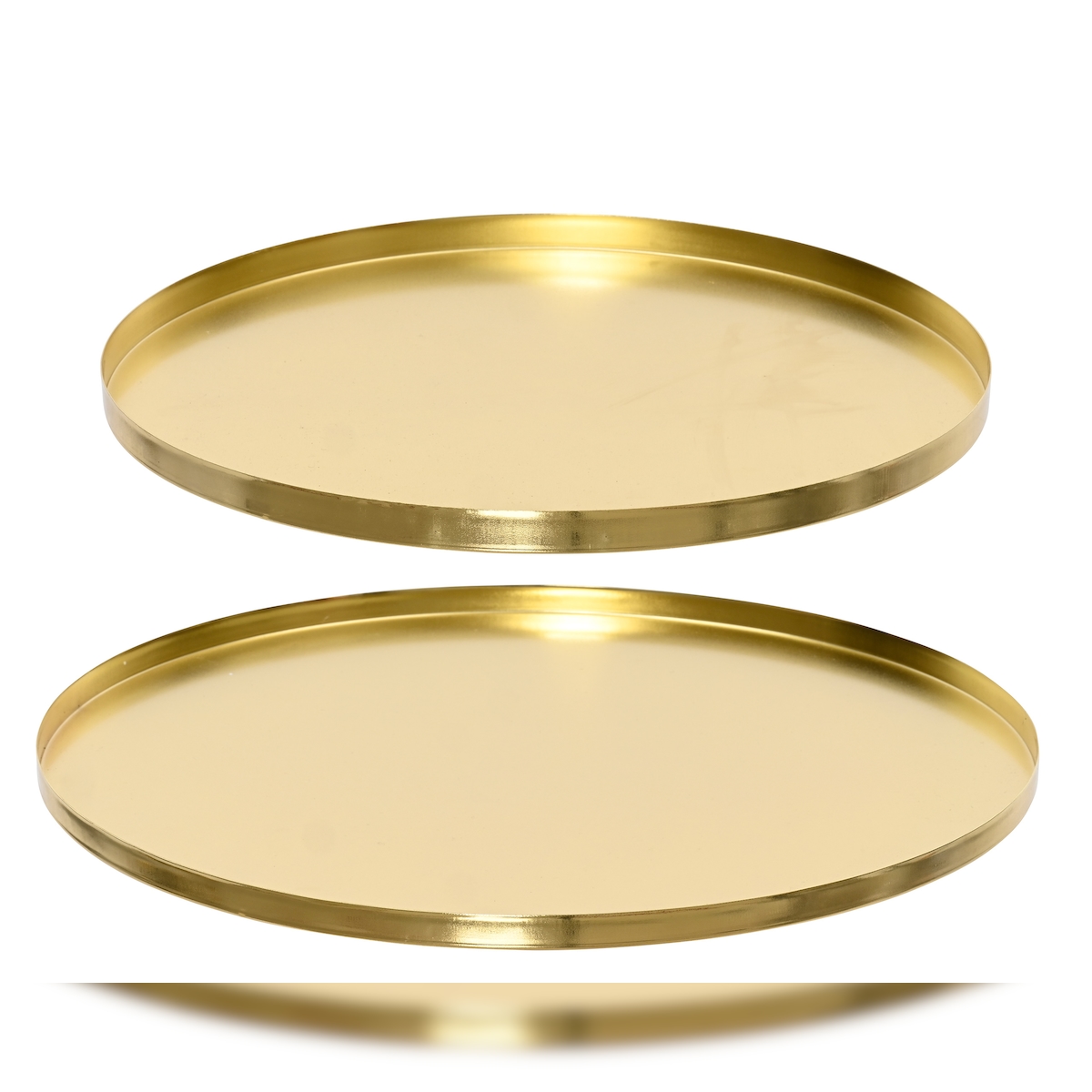 Dekoratives Tablett rund 30-35cm Metall glänzend 2er Set - Deko Serviertablett - Dekoschale Dekotablett - Serving Tray Schlicht - Dekoteller gold