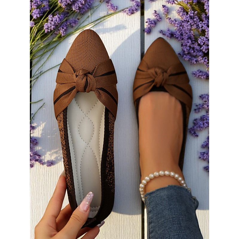 Women's Flyknit Knot Slip-On Flats- Soft Knit Upper with Stylish Stripes and Durable Sole, Perfect for Comfortable and Casual Activities