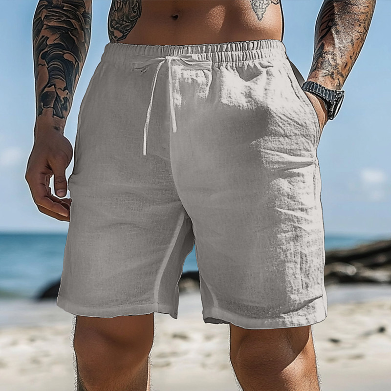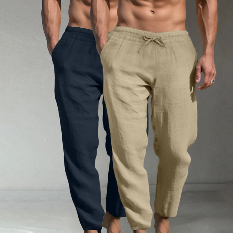 Men's Linen Pants Trousers Summer Pants Baggy Pants Beach Pants Drawstring Pocket Multi-pack Plain Comfort Lightweight Full Length Yoga Casual Daily Vacation Classic Style Loose Fit KhakiWhiteGray
