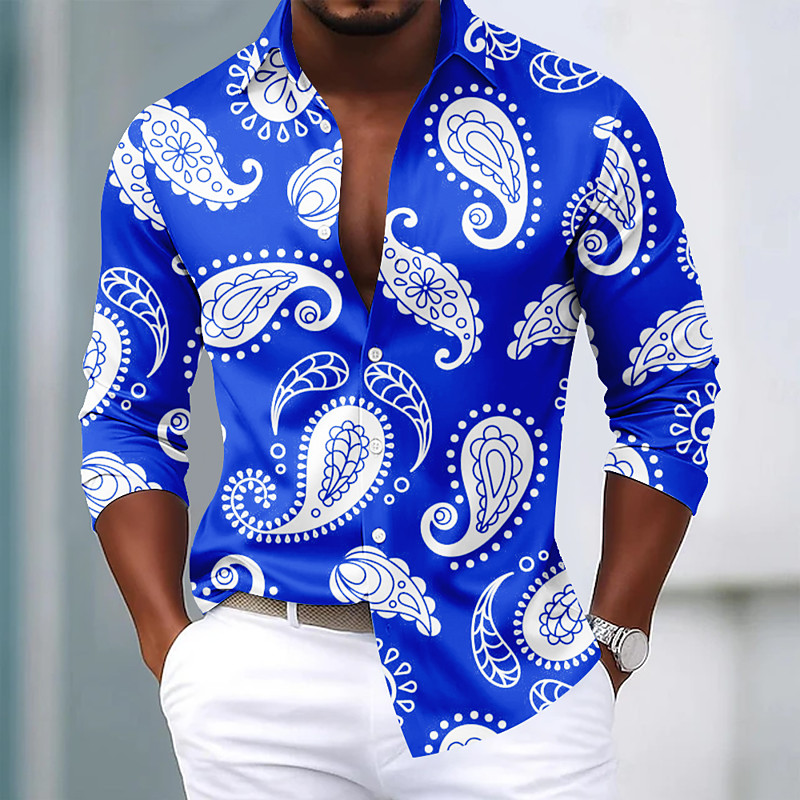 Men's Paisley Floral Print Ethnic Shirt Satin Shirt Dress Shirt Long Sleeve Vintage Retro Vacation Dailywear Summer Spring Fall Turndown 3D Print Button Up Shirts Black Blue Purple Khaki