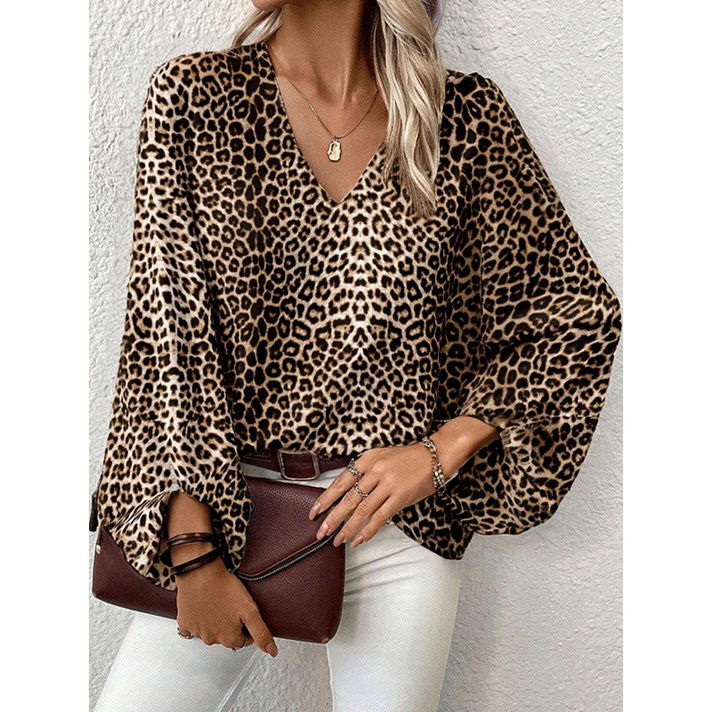 Women's Blouse Leopard Stylish Casual Long Sleeve V Neck Regular Tops Daily Print Leopard Spring Fall