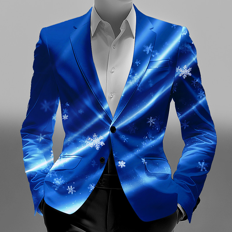 Men's Blazer Coat Christmas Casual Daily Modern Fall / Winter All Seasons 100% Polyester Snowflake 3D Print Buttons Thermal Warm Comfortable Single Breasted Blazer Red Blue Purple Green