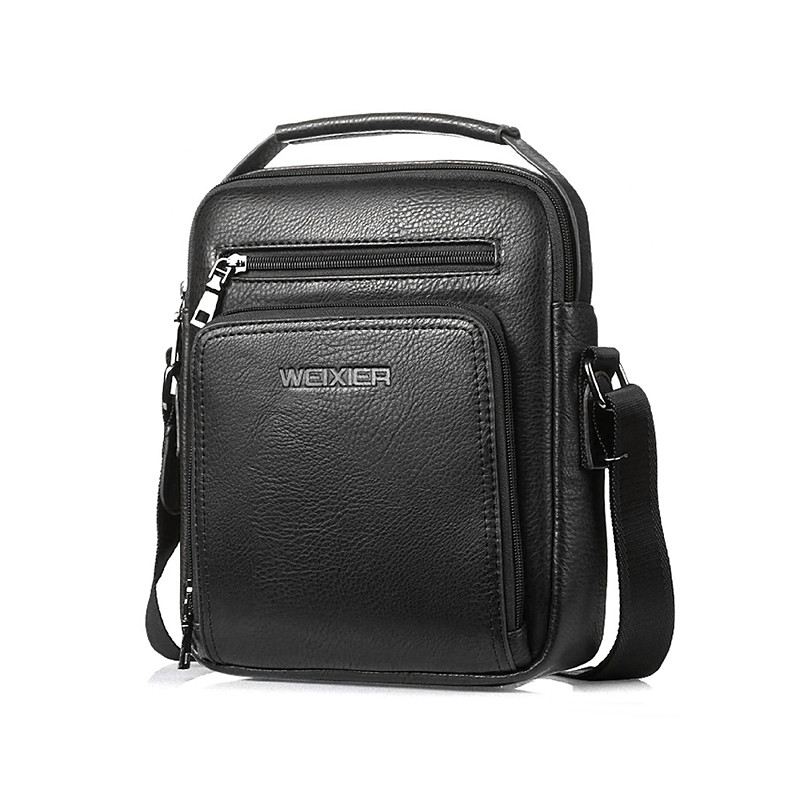 Men's Brown Black Faux Leather Crossbody Messenger Bag with Multiple Zipper Compartments for Business Travel and Daily Office Use