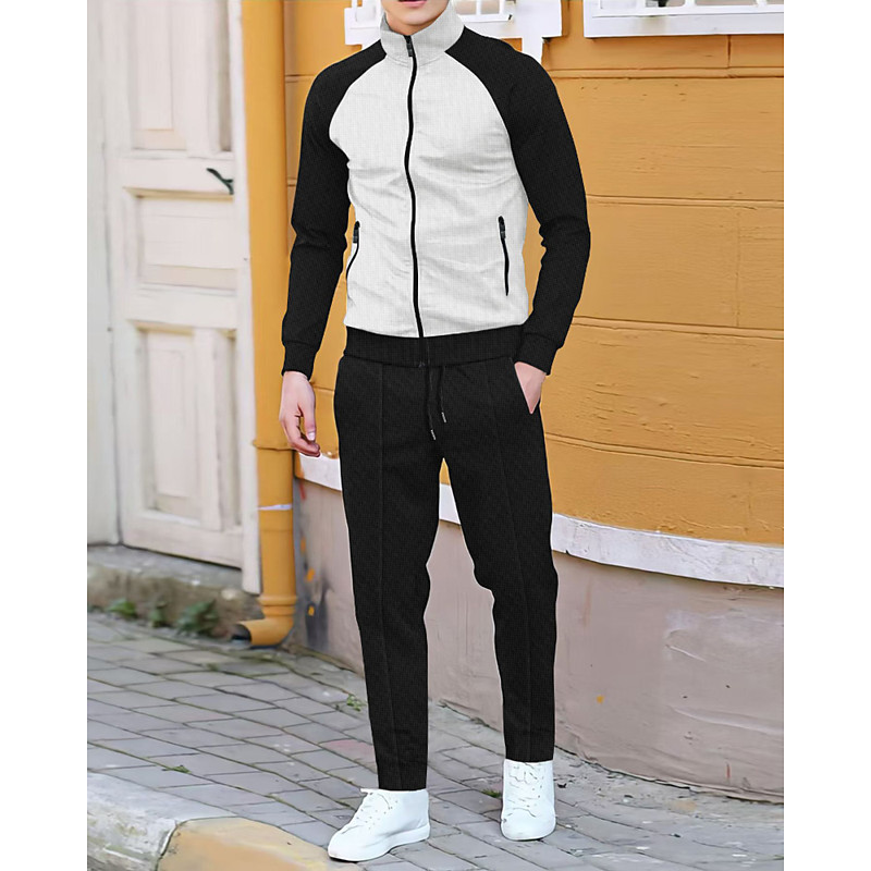 Men's Tracksuit Sweatpants Track Top Zipper Pocket Color Block Clothing Suit Fall White Brown Gym Athleisure Running Windproof Long Sleeve Sport Activewear Stretchy Regular Fit