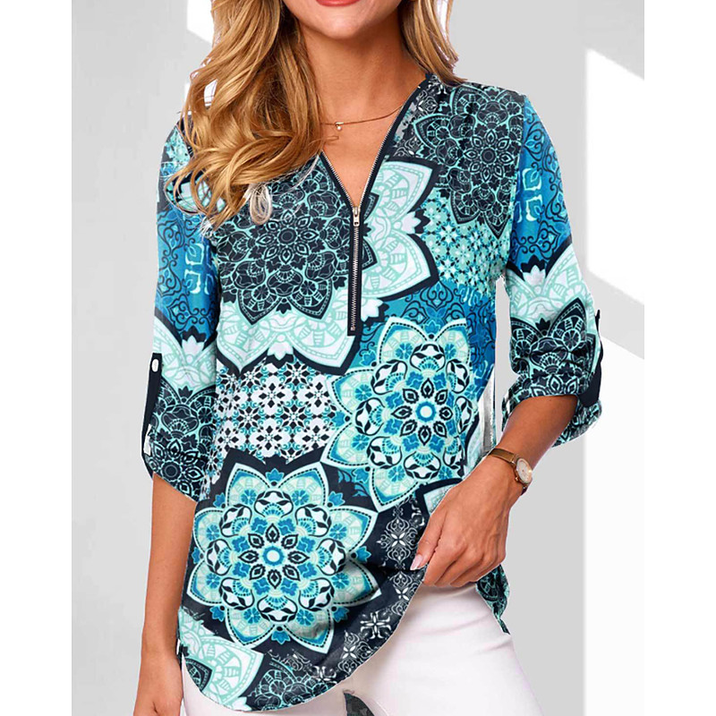 Women's Shirt Blouse Flower Modern Casual Long Sleeve V Neck Regular Tops Daily Holiday Going out Zipper Print White Pink Navy Blue Blue Camel Fall