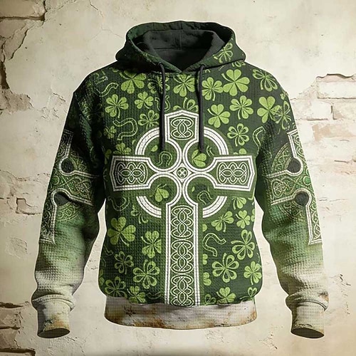 Felpa con cappuccio stampata in 3D con croce celtica per il giorno di San Patrizio, da uomo, con trifoglio irlandese e ferro di cavallo, grafica vintage, verde, abbigliamento, abbigliamento, s m l xl