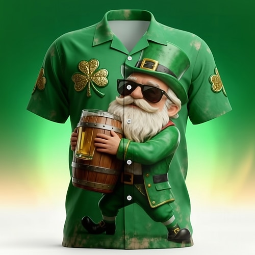 San Patrizio 2026 Blusa / Camicia Cartone animato Manga Trifoglio Irlandese Grafico per Per uomo Adulti Stampa 3D per Giorno di San Patrizio Casual Quotidiano Festival