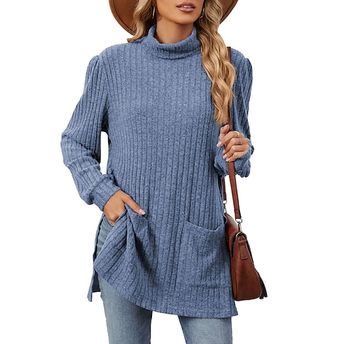 Per donna Blusa Tinta unica Elegante Casual Manica Lunga Collo Alto Top lunghi Quotidiano Tasca Nero Rosso Blu Cachi Grigio Primavera Autunno Inverno