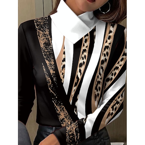 Per donna Maglietta Grafico Leopardo Geometrico Elegante Vintage Casual Manica Lunga Collo Alto Top Regolari Quotidiano Stampato Blu Viola Verde Cachi Primavera Autunno Inverno