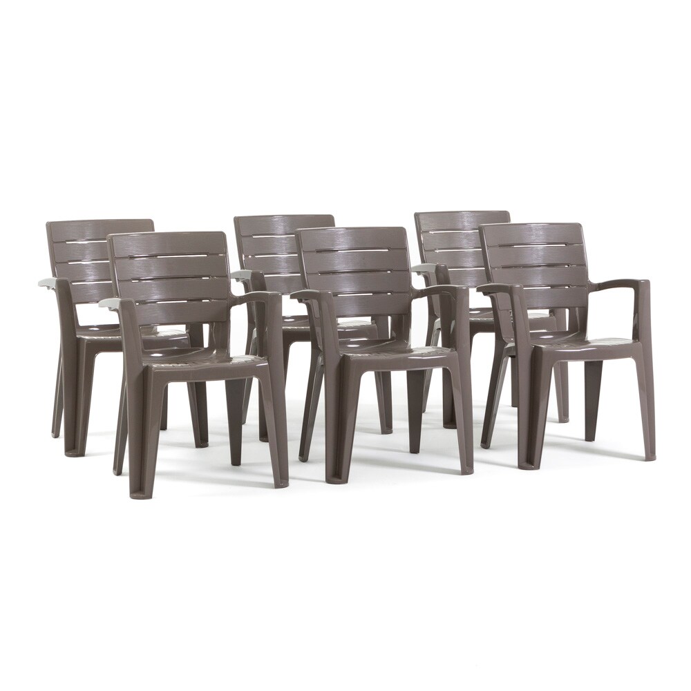 RATTATAN Set aus 6 einteiligen Stühlen aus Polypropylen mit Glasfaser, Holzoptik, stapelbar für Außen- und Gartenbereich, Bar und Restaurant – Anita – Taupe