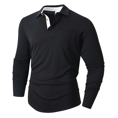 Per uomo Maglia da golf Polo da Golf Lavoro Casuale Bavero Manica Lunga Essenziale Moderno Semplice Tasca Bottoni Primavera Autunno Vestibilità regolare Nero Bianco Blu marino Verde scuro Cachi Verde