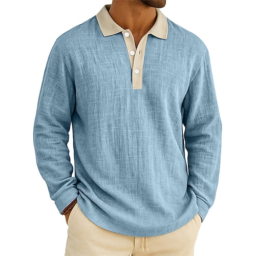 Per uomo Maglia da golf Polo da Golf Lavoro Casuale Bavero Manica Lunga Essenziale Moderno Blocco di colori Patchwork Bottoni Primavera Autunno Vestibilità regolare Verde scuro Nero Bianco Verde