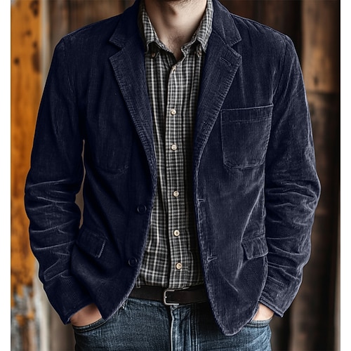 Per uomo Giacca in Velluto a Coste Colletto ad incastro Vintage Classico All'aperto Tinta unita Blazer Blu Nero Kaki Vestibilità su misura Monopetto Due Bottoni